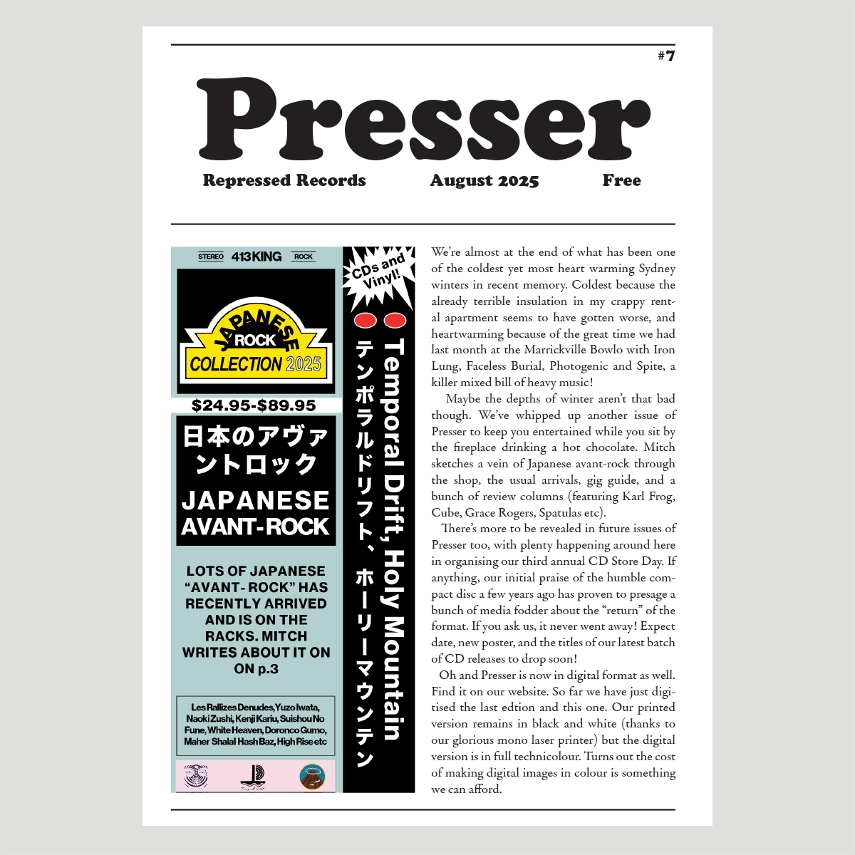 Our monthly zine/newsletter with reviews and articles for your reading pleasure! Free!