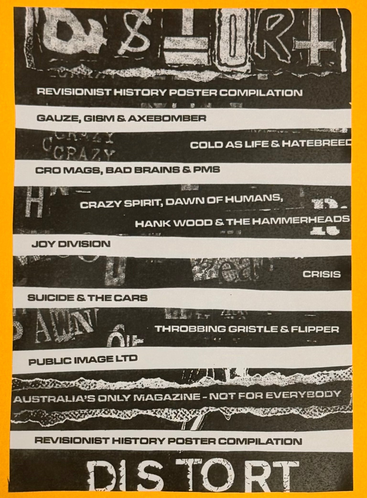 Along with the slow fade of printed zines into obscurity has come the death of the flyer and the poster as physical objects. This aesthetic is an essential part of hardcore and punk music. This is a physical culture that is attempting to survive online… I celebrate the new era of self-publishing with this issue of Distort… a compilation of posters of historic revision.